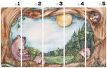 W cieniu drzew, pod drzewami misiowa rodzinka szykuje się do snu. Zamknięta kompozycja wzoru przeniesie Ciebie i Twojego malucha do świata baśni. Ciepłe, barwne kolory wzoru pozwolą na zaaranżowanie pokoju dla dziecka w każdym kolorze. Idealnie wpasuje się w nowoczesne wnętrze lub urządzone w stylu naturalnym czy boho.