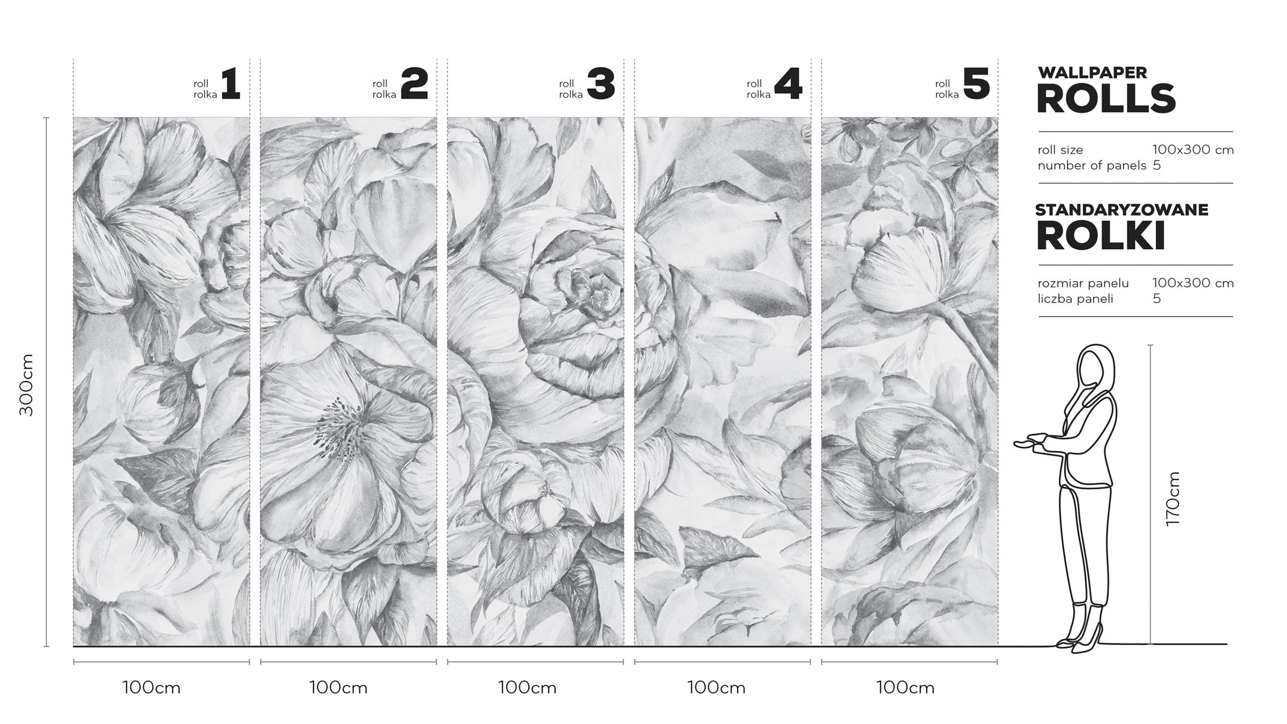 Wersja w standaryzowanych rolkach ułatwia planowanie układu oraz uzyskanie spójnych łączeń. Stonowana kolorystyka pozwala na swobodną budowę palety dodatków – od bieli i szarości, po ciepłe beże i przygaszoną zieleń. To idealny wybór dla osób ceniących artystyczną wrażliwość, dopracowane szczegóły oraz ponadczasowy efekt.