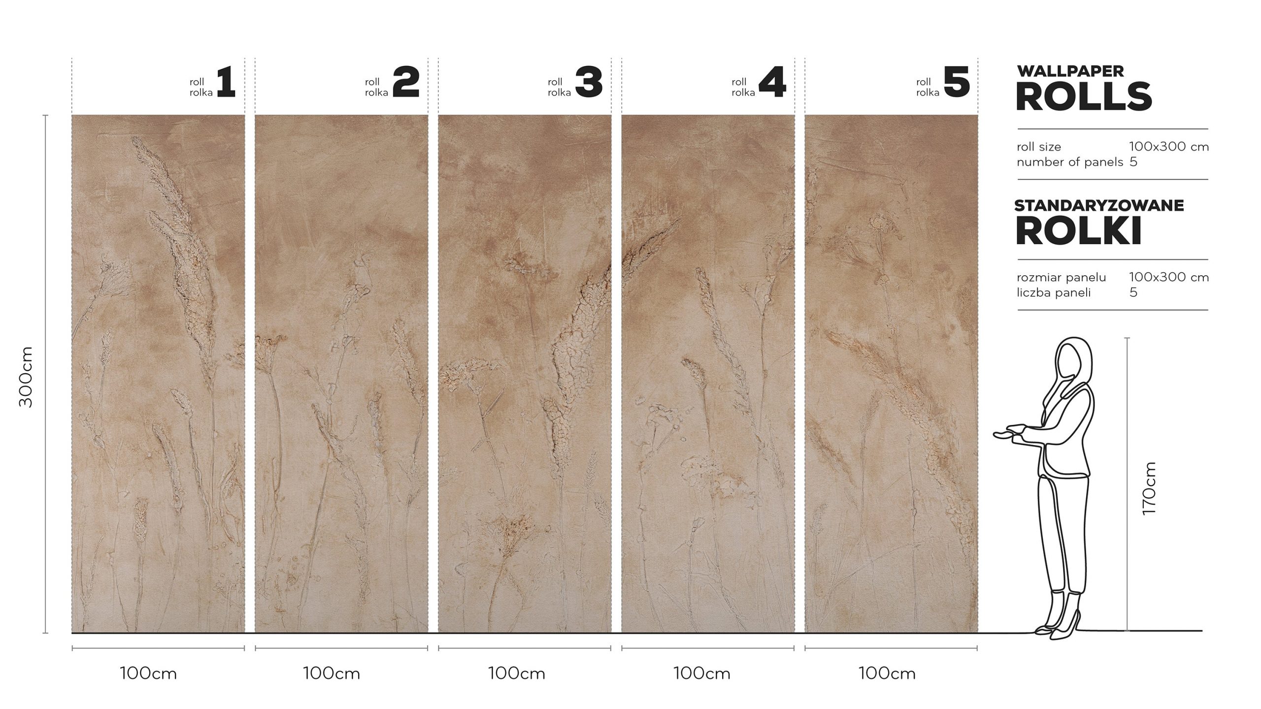 Wysokiej jakości druk oddaje niuanse cieniowania oraz delikatne obrysy roślin. Ponadto, subtelna, matowa powierzchnia eliminuje niepożądane refleksy, podkreślając szlachetny charakter dekoracji. Campo di Grano wyróżnia się dojrzałą paletą barw i estetyką wabi-sabi. To idealny przykład “rustic chic” w nowoczesnym wydaniu, doskonały do salonu, sypialni, gabinetu, holu, strefy SPA, butiku czy kameralnej restauracji. Tapeta świetnie współgra z drewnem, lnem, ceramiką i kamieniem, odnajdując się w stylach boho, japandi, modern organic oraz klasycznym minimalizmie.
