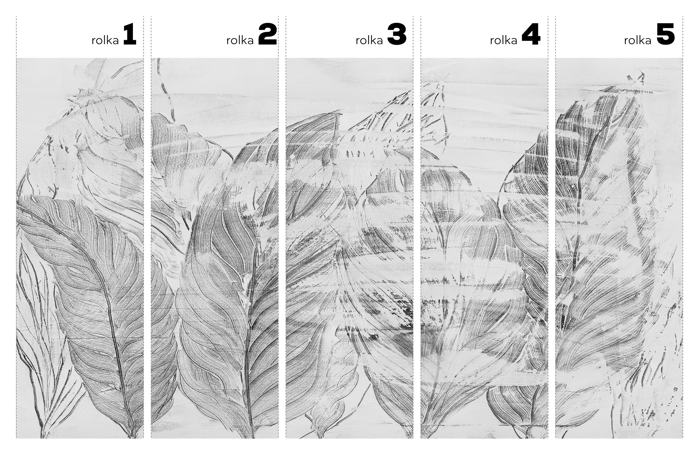 Wzór ten oddycha skalą. Szerokie pęki roślinności miękko nakładają się na siebie. Płynność kompozycji sprawia, że ściana zyskuje niemal muralowy efekt. Z bliska zachwyca faktura kreski – dynamiczne, malarskie pociągnięcia są odwzorowane z precyzją. Widoczne są półtony oraz miękkie przejścia. Mądrze przemyślany raport oraz standardowy format rolek ułatwiają planowanie ułożeń. Duża skala motywu zmniejsza widoczność łączeń, prowadząc wzrok po spójnej, harmonijnej płaszczyźnie.