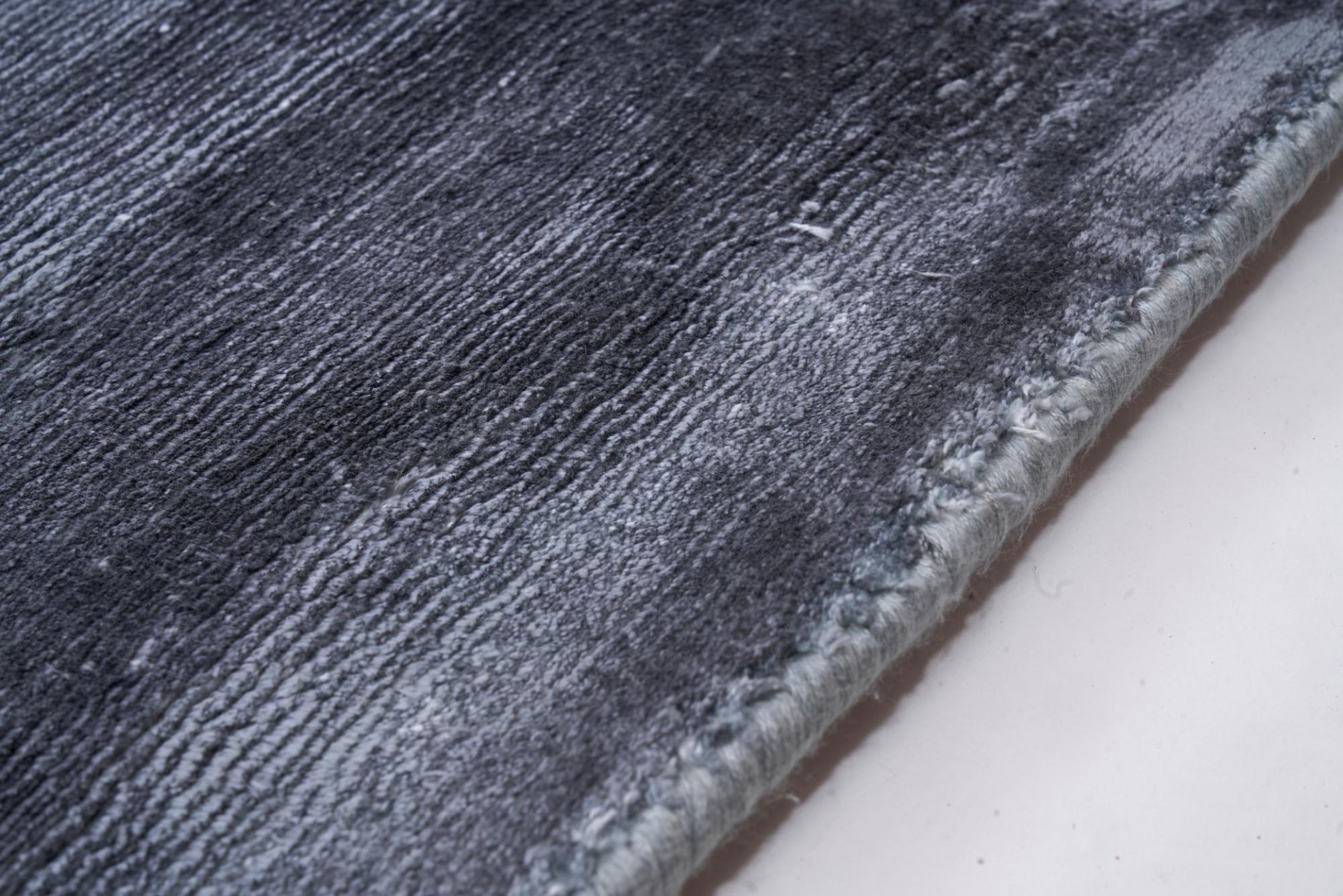 Ręcznie wykonany w Indiach z 100% wiskozy, gęste, jedwabiste runo. Cieniowany stalowy odcień zmienia kolor pod wpływem światła. Idealny do salonu lub sypialni; łatwa pielęgnacja.