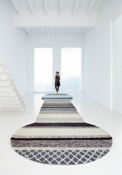 Dywan z kolekcji MANGAS projektu Patrici Urquiola, wielokolorowy, o zróżnicowanej fakturze, został wykonany ręcznie przy pomocy krosna tkackiego z wełny dziewiczej. Dywany oraz pufy z tej kolekcji można łączyć w jedną całość tworząc własną niepowtarzalną kombinację.