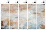 Wyobraź sobie ścianę, która przypomina wielki fresk. Szlachetnie spatynowana, z delikatnymi akcentami „złota” oraz stonowanymi odcieniami beżu, jasnego brązu, złamanej bieli, chłodnej szarości i błękitu. Tapeta Elemental – dostępna w standardowych rolkach – przekształca wnętrze w artystyczną przestrzeń. Przypomina olejny obraz na płótnie, z wyraźnymi rytmami plam, zacieków i pociągnięć, które nadają głębię i teksturę.