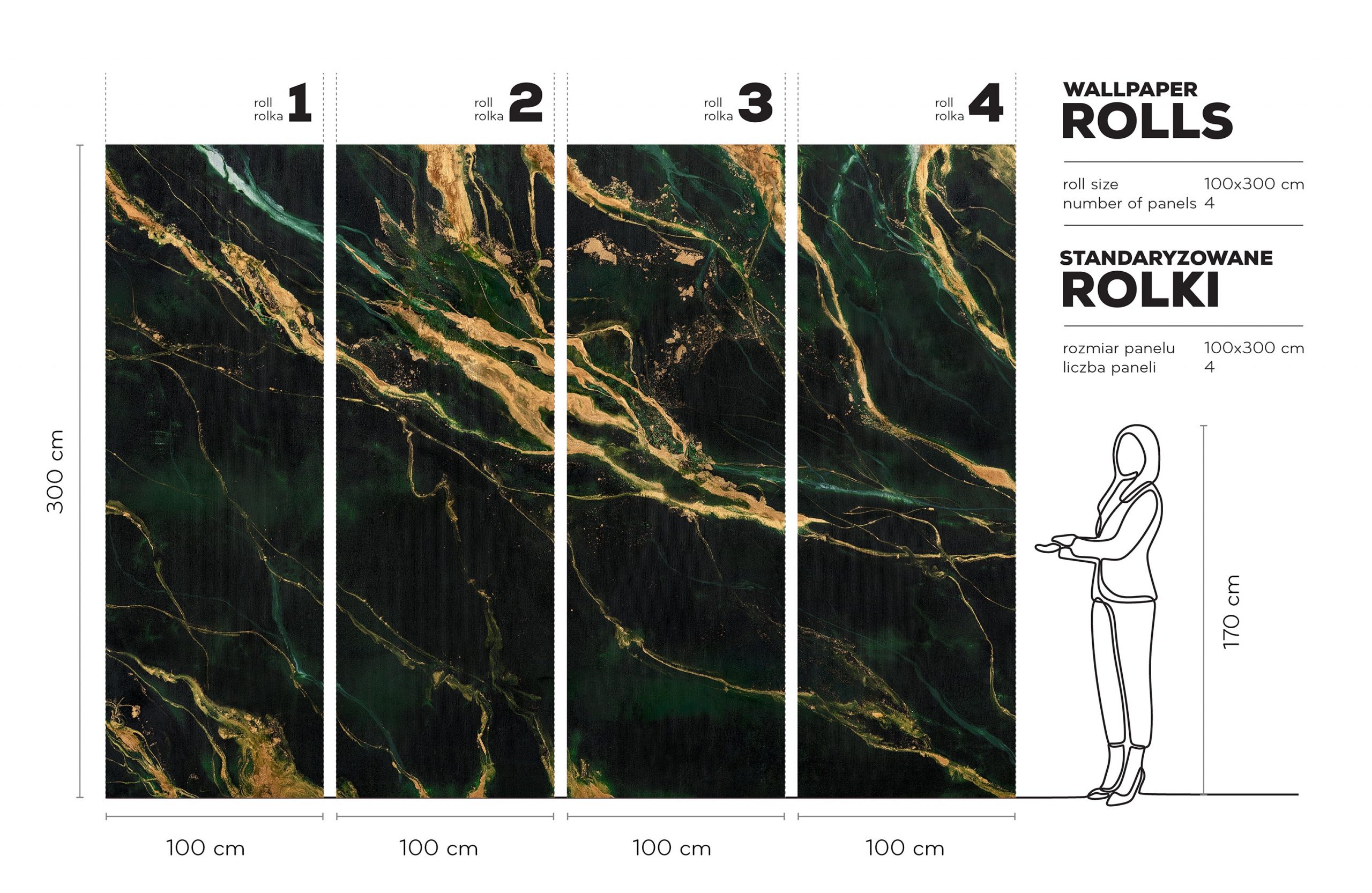 Wyobraź sobie przestrzeń, gdzie ściana przybiera formę szlachetnego minerału. Głęboka butelkowa zieleń, z miejscami jaśniejącymi szmaragdem, przecinana jest organicznymi żyłami w odcieniach złota. Tapeta „Emerald” w standardowych rolkach to nowoczesna interpretacja abstrakcyjnego marmuru. Jej płynna kompozycja przypomina malarskie fluid art, tworząc wrażenie dużego, spójnego muralu, w którym nie ma widocznych powtórzeń.