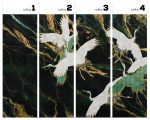 Głęboka, butelkowa zieleń na tle tańca żurawi. W obrazie występuje pewna dynamika, a złote elementy nadają jej tylko ton.
