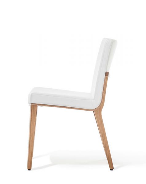 Ręcznie polerowane drewno, sprężyny i wzmocnione krawędzie ukryte pod tapicerką gwarantują wygodę i komfort siedzenia nawet przez dłuższy czas. Cała kolekcja Moritz, na którą składa się jeszcze krzesło z podłokietnikami, fotel oraz stołek barowy, została poddana długotrwałym testom i spełnia rygorystyczne wymagania wielu powierzchni użytkowych np. pokoi hotelowych.