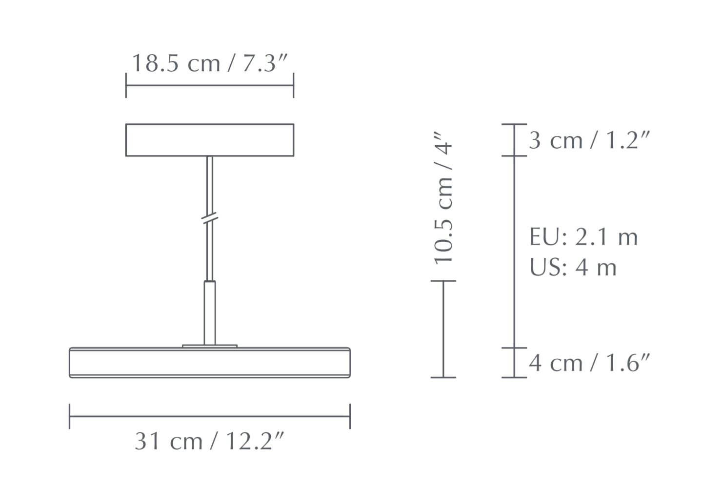 Lampa dostarczana jest ze zintegrowanym panelem LED oraz przewodem w kolorze czarnym o długości 2.7 m i czarną, metalową podsufitką. Lampa dostępna jest w kilku kolorach oraz rodzajach i wielkościach. Projekt: Søren Ravn...