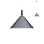 Lampa z aluminium pomalowana na kolor czarny mat, aluminiowy klosz pomalowany na kolor metalowy z zewnątrz i matowy biały wewnątrz.
