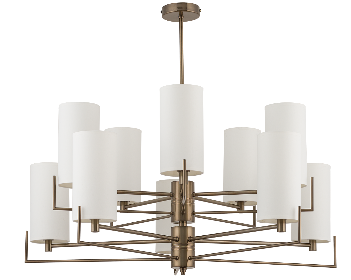 LAMPA MOSIĘŻNA NEMI KUTEK MOOD NEM-ZW-10(T) to elegancki żyrandol, który łączy w sobie piękno mosiądzu z nowoczesnym, geometrycznym designem. Jego smukłe ramiona i cylindryczne, materiałowe klosze tworzą efektowną kompozycję, która wprowadza lekkość, a jednocześnie wyróżnia się charakterem. To lampa, która od razu staje się głównym punktem Twojego wnętrza.