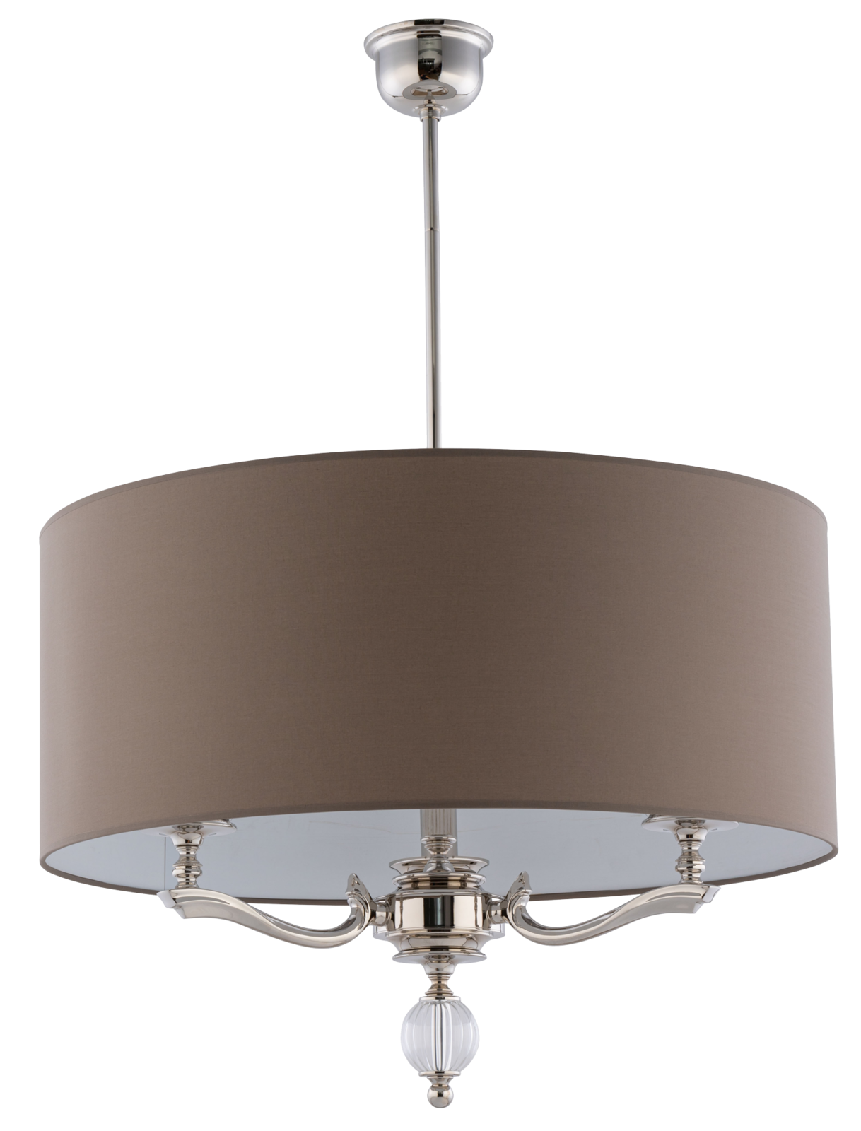 Lampa wyposażona jest w trzy źródła światła, co zapewnia wygodne i skuteczne oświetlenie. Idealnie sprawdzi się nad stołem w jadalni, w reprezentacyjnym salonie czy w przytulnej sypialni. Smukła konstrukcja z delikatnie wygiętymi ramionami pięknie “obejmuje” abażur, tworząc harmonijną formę. Tę lampę bez trwogi można wkomponować zarówno w klasyczne aranżacje, jak i te nowoczesne, inspirowane stylem nowojorskim czy Hampton.