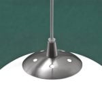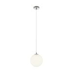 Lampa o satynowo-niklowej konstrukcji metalowej z mlecznym kloszem z dmuchanego szkła. Wymiary: jak na rysunku Dane techniczne: Oprawka: E27 Zasilanie: 230V Źródło: 1 x E27 Moc: 1 x max.42W IP20...