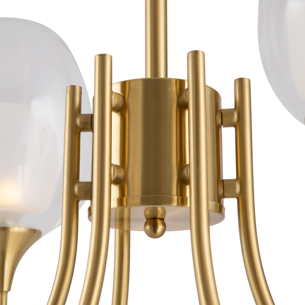 Kolor oprawy Mosiądz Rodzaj towaru Źródło światła E14 Liczba żarówek 6 Możliwość przyciemniania Nie Ochrona IP IP 20 Średnica 950 / Wysokość 857 Materiał oprawy Szkło Szerokość 950 / Długość...