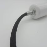 Lampa wisząca w stylu scandi o dwukolorowej konstrukcji.