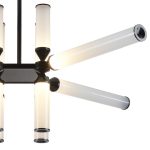 Lampa wisząca w czarnym błyszczącym wykończeniu z mlecznymi szklanymi kloszami.