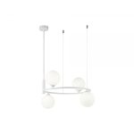 Metalowa rama. Klosze z matowego szkła. Kolor klosza: biały Minimalna wysokość, mm: 340 Maksymalna wysokość, mm: 1840 Żarówki: 4 X G9 (25 W) – brak w zestawie Szerokość, mm: 435...