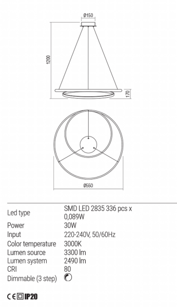 Lampa wyposażona w diody LED SMD, konstrukcja z aluminium i metalu z wykończeniem z brązu, klosz z mlecznego silikonu w kolorze białym. Wymiary: jak na rysunku Dane techniczne: Moc: 30W...