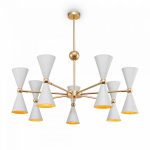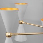 Metalowe okucia i rolety. Kolor okuć – złoty. Klosze są w kolorze czarnym ze złotym lub białym ze złotym kolorem. Ramiona obracają się, aby światło było kierunkowe. Kolor klosza: biały...