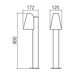 Słupek zewnętrzny, odlewana aluminiowa obudowa malowana elektrostatycznie na ciemnobrązowy i przezroczysty szklany klosz. Wymiary i parametry jak na rysunkach. W zestawie brak źródła światła....