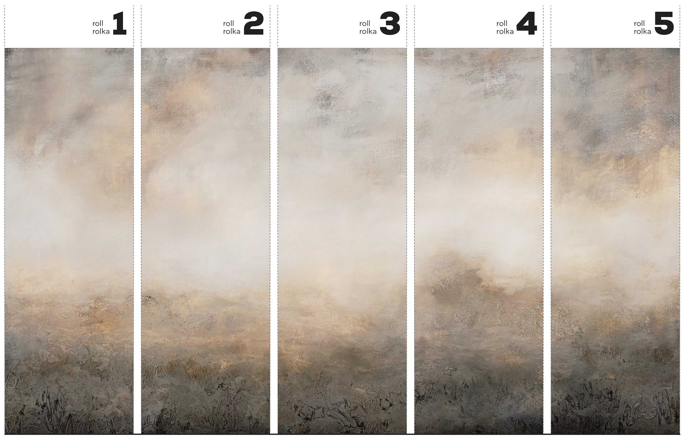 Wzór w dotyku przypomina malarstwo impasto. Nieregularne mikropęknięcia, zgrubienia i wypukłości są oddane z wyjątkową starannością, tworząc efekt gęstej, malarskiej materii. Miękkie przejścia tonalne i precyzyjnie zakomponowane przetarcia sprawiają, że każdy pas układa się w harmonijną całość. Mimo formy w standardowych rolkach, efekt jest spójny i “galeryjny”.