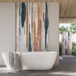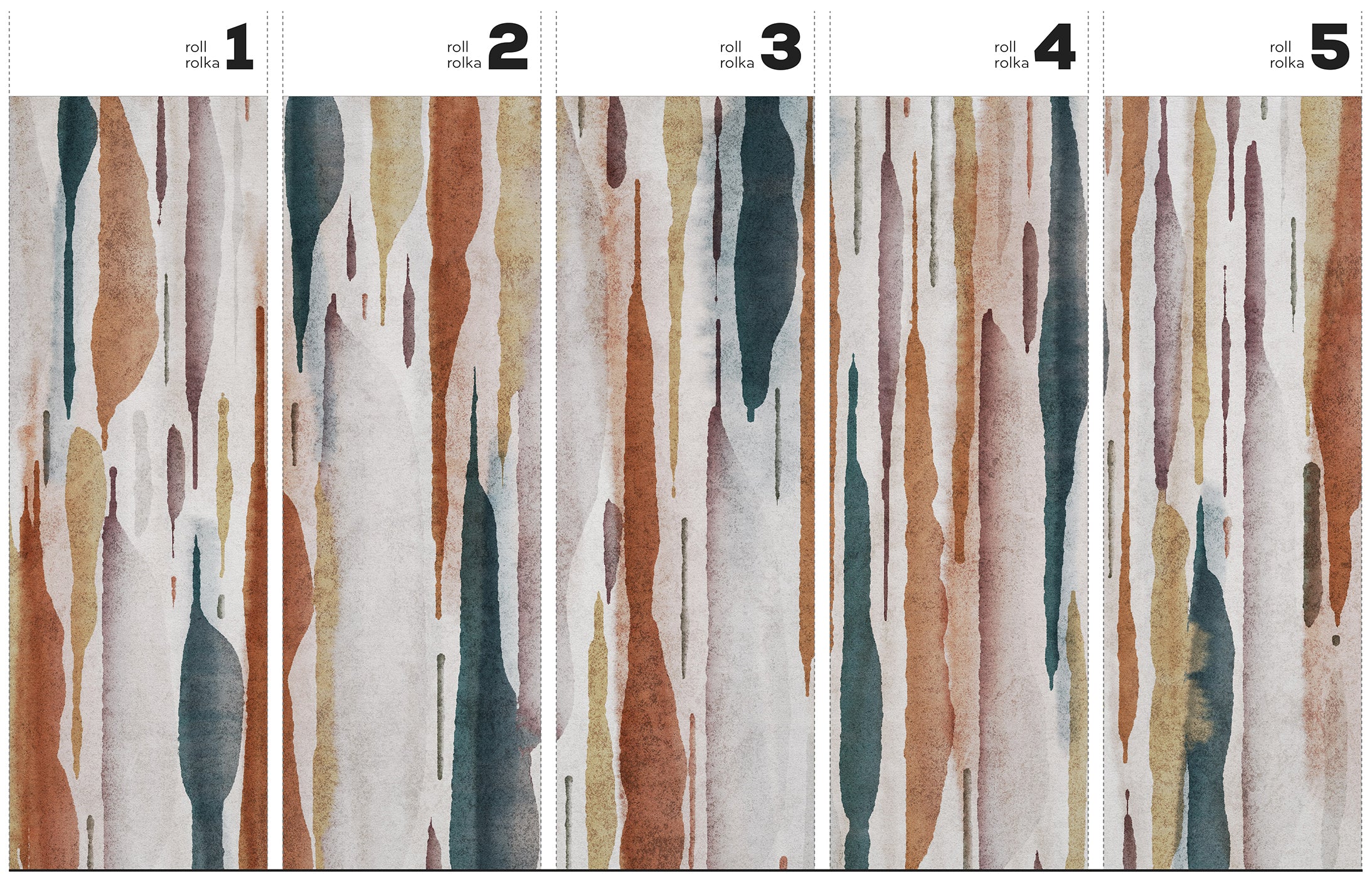 Modan – Tapeta w standaryzowanych rolkach zaprasza do nowoczesnego i spokojnego wnętrza, gdzie sztuka harmonijnie łączy się z architekturą. Pionowe, akwarelowe smugi przypominają delikatny deszcz lub warstwice skalne. Nadają one ścianie malarską głębię i łagodny rytm, który wprowadza ciszę i podkreśla charakter przestrzeni.
