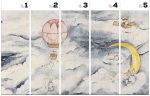 To nie jest zwykły deseń, lecz spójna muralowa kompozycja. Panorama przechodzi płynnie między elementami, zachowując doskonały balans i rytm. Centralny punkt balonu przyciąga wzrok, a pastelowe barwy z beżami i brązami nadają scenie ciepło i elegancję. Druk jest wyjątkowo dopracowany. Akwarelowe przejścia tonalne są miękkie, kontury subtelne, a matowe wykończenie eliminuje odblaski, podkreślając ilustracyjny charakter wzoru.