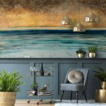 Pecan to propozycja spektakularna, odważna i energiczna. Połączenie odcieni złota z granatem, turkusem i błękitem przywodzi na myśl wyjątkowe zachody słońca nad morzem. Pecan przenosi nas na piaszczystą plażę, gdy ciężkie powietrze upalnego dnia przyjemnie rozwiewane jest przez wieczorną bryzę, a słońce schowało się już za horyzontem pozostawiając niezwykłą, magiczną łunę. Tapeta świetnie wpasuje się we wnętrza loftowe, szczególnie w sąsiedztwie cegieł. Równie zjawiskowo będzie wyglądał zarówno w sypialni czy salonie, jako główny element ozdobny pomieszczenia. Pecan to znakomite uzupełnienie aranżacji z meblami w bardzo modnym kolorze royal blue.