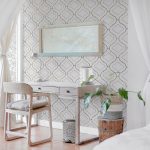 Z perspektywy użytkownika najważniejsza jest wszechstronność. Tapeta Arabesca White Gold świetnie komponuje się z naturalnym drewnem, mosiądzem, lnianymi tkaninami oraz welurem. Wprowadza spokój i luksusową aurę do salonu, sypialni i jadalni. W holu, gabinecie czy butikowym wnętrzu staje się znakiem rozpoznawczym: ekskluzywnym, ale jednocześnie stonowanym. Doskonale odnajduje się w aranżacjach modern classic, eklektycznych, boho chic, kolonialnych i śródziemnomorskich.