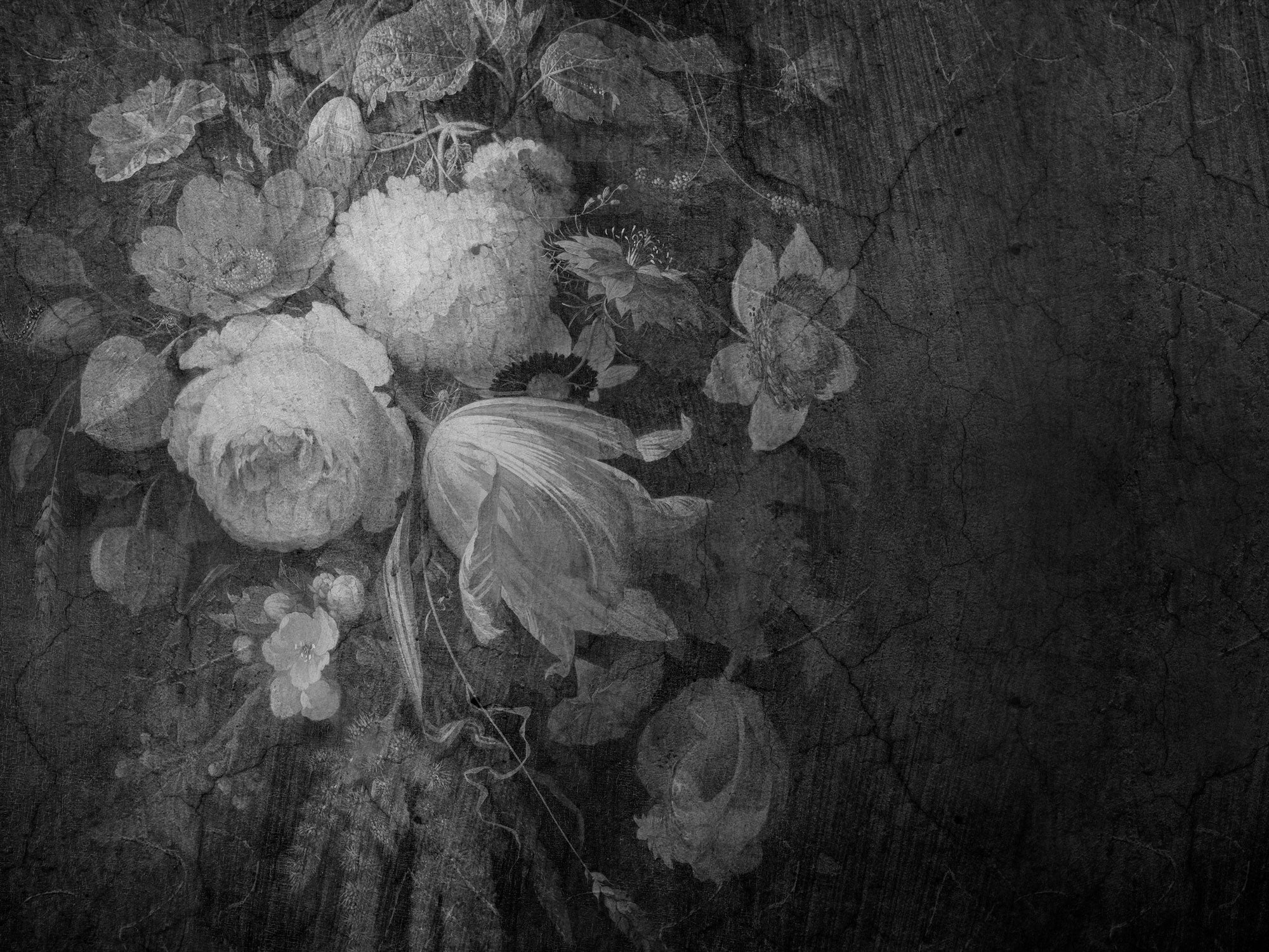 Boudoir grey jest bogato zdobionym wzorem kwiatowym inspirowanym obrazem Abrahama Mignona. Duże kwiaty, obfite kształty zaprezentowane w odcieniach bieli i szarości tworzą prawdziwe dzieło sztuki na ścianie.