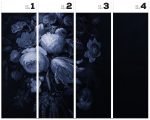 Głęboki granat, przypominający aksamitne tło w galerii, tworzy dramatyczny efekt światłocienia. Z tego bogatego tła wyłaniają się pełne przepychu róże, hortensje i tulipany. Tapeta Boudoir Navy zamienia ściany w malarskie dzieło. Inspirując się martwymi naturami XVII wieku, zwłaszcza dziełami Abrahama Mignona, reinterpretacja klasycznych motywów pozostaje bardzo nowoczesna. Paleta barw została ograniczona do chłodnych błękitów i szaroniebieskich tonów, co zwiększa kontrast i elegancję. Detale, takie jak delikatne pnącza i małe owady, a także miękkie przejścia światła, budują gęstą, barokową kompozycję o wyraźnym rytmie i imponującej skali.