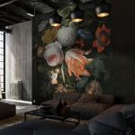 Klasyczna i pełna wyrazu tapeta inspirowana XVII-wiecznym malarstwem holenderskim typu still life. Bogaty bukiet kwiatów – w tym piwonie, tulipany, lilie i bławatki – został ukazany z mistrzowską dbałością o detal i światłocień. Na tle głębokiej czerni rośliny emanują barwą i głębią, tworząc efekt dramatyzmu i luksusu.