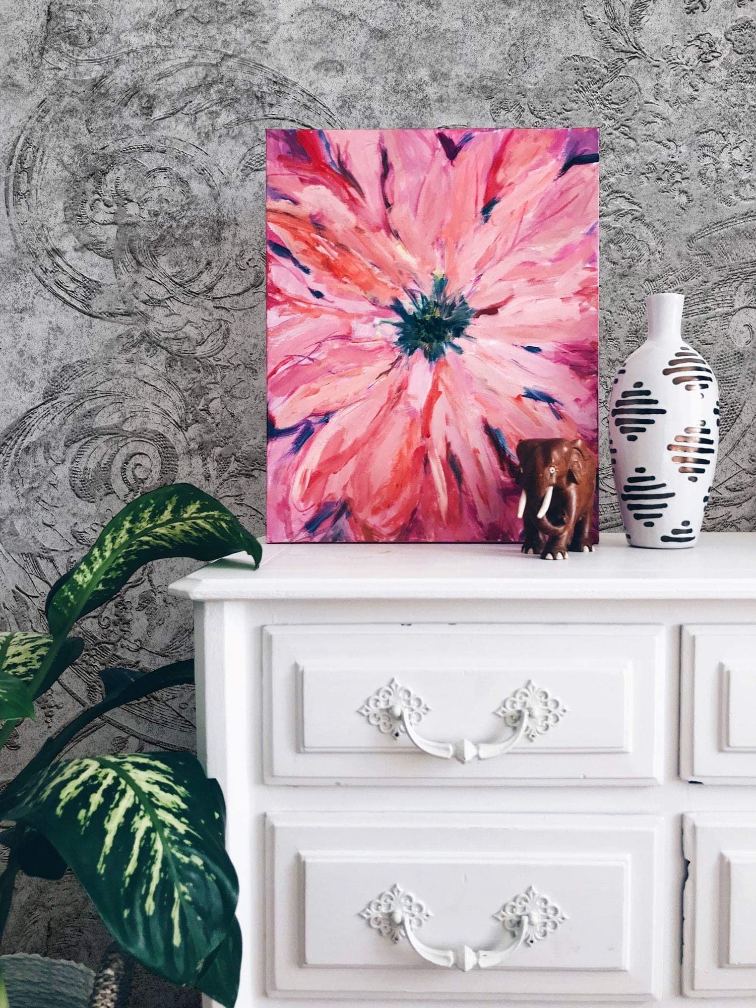 Wyobraź sobie ścianę, która przypomina szlachetnie spatynowany tynk z subtelnymi śladami historii. Tapeta Classic Dark Grey łączy surową, mineralną fakturę kamienia i betonu z delikatnie wplecionymi, klasycznymi ornamentami. Znajdziesz tam zwinięte zwoje, medaliony i motywy roślinne, jakby odcisnęły je upływające lata. Paleta barw od jasnoszarych tonów po głęboki grafit tworzy wyrafinowaną grę światła i cienia. Tworzy to ścianę, która jest tłem pełnym niuansów, a nie jednorodną powierzchnią.