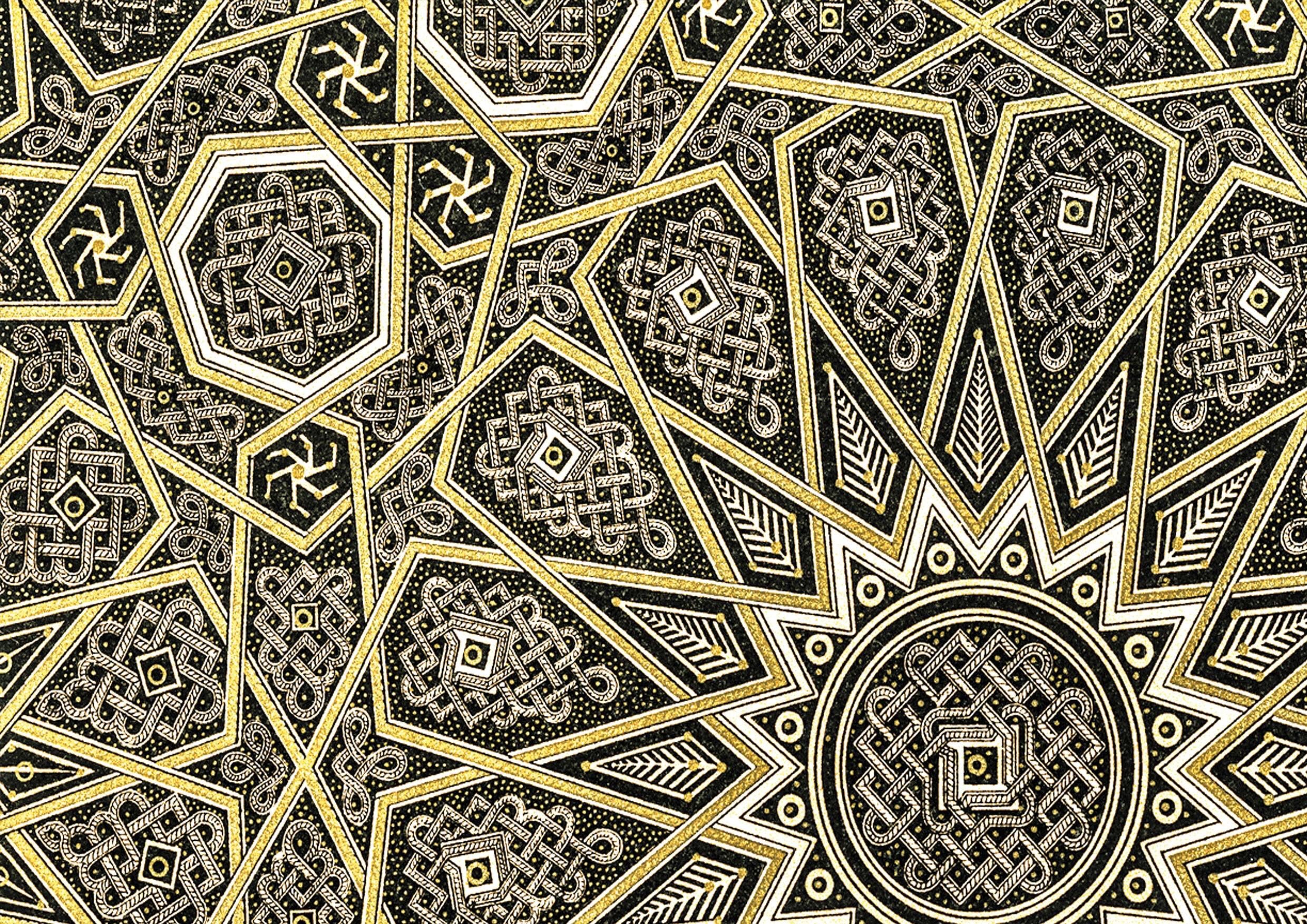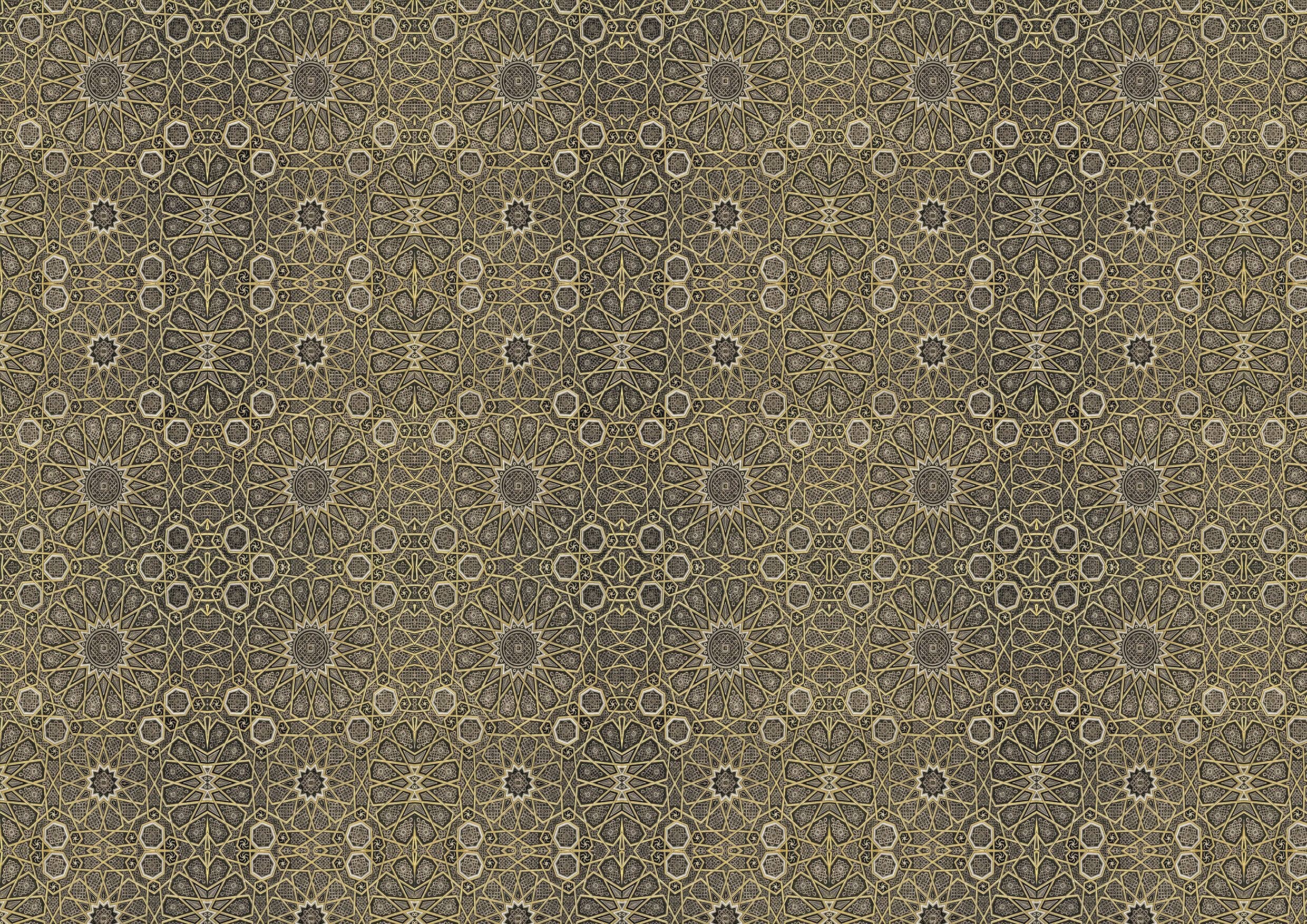Wyobraź sobie ścianę ozdobioną misterną, geometryczną koronką na głęboko ciemnym tle. Tapeta Dazzle wprowadza do wnętrza atmosferę bliskowschodnich pałaców. Precyzyjnie przeplatające się linie tworzą gwiazdy, ośmio- i szesnastokąty oraz delikatne arabeskowe detale, tworząc hipnotyzującą, regularną tessellacją. Zgaszone złoto, ochra i subtelne akcenty kości słoniowej doskonale kontrastują z brązowo-czarną bazą. To wszystko buduje aurę luksusu, tajemniczości i ciepła.