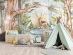 Leśna polana, pełna barwnych detali, małych leśnych zwierzątek z królem lasu – jeleniem na czele. Ciepłe, barwne kolory wzoru pozwolą na zaaranżowanie pokoju dla dziecka w każdym kolorze. Idealnie wpasuje się w nowoczesne wnętrze lub urządzone w stylu naturalnym czy boho.