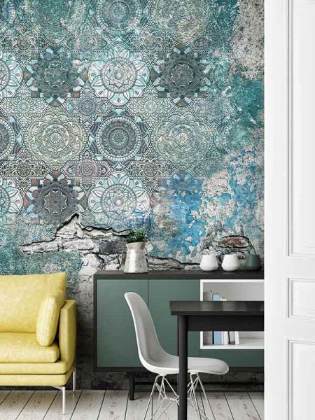 Ręcznie malowany wzór z nieregularnymi kształtami cegieł, delikatnymi przetarciami i pęknięciami, dodaje tapecie prawdziwego uroku. Dzięki subtelnym, przydymionym niebieskim tonacjom, tapeta DESIR łączy surowość z elegancką prostotą. Zaskakuje elegancją i sprawia, że każde wnętrze staje się bardziej wyjątkowe.