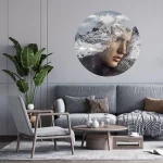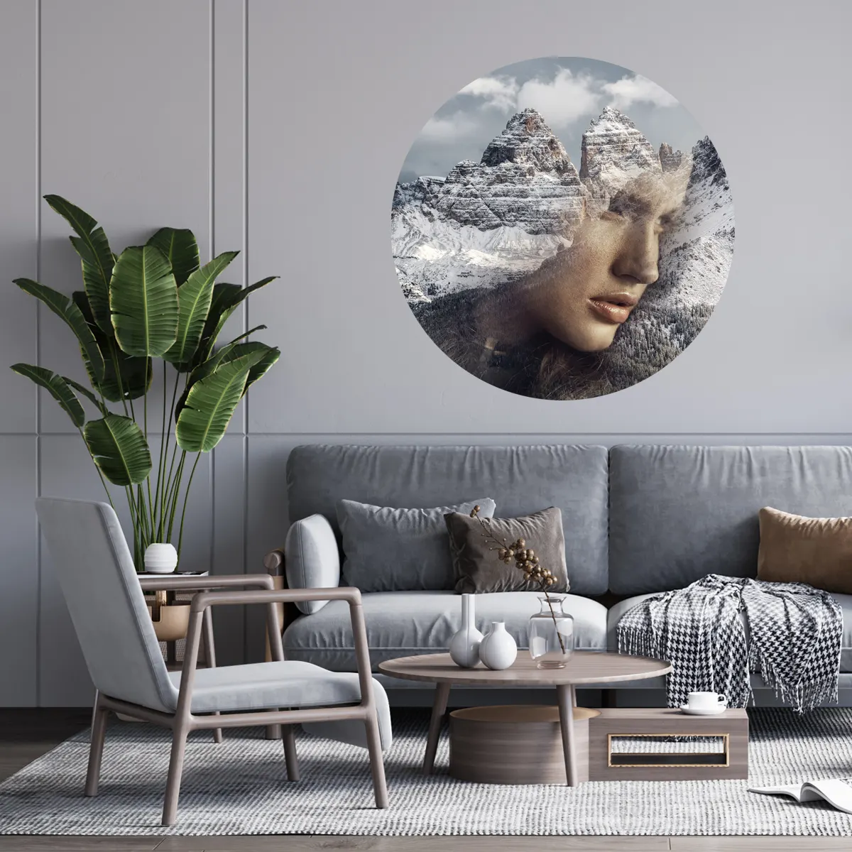 Dekoracje na ścianę w formie okrągłego muralu o średnicy 130 cm. Dekoracje ścienne Dots są wykonane z materiału samoprzylepnego o strukturze płótna ALVAR LINEN.