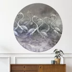 Dekoracje na ścianę w formie okrągłego muralu o średnicy 130 cm. Dekoracje ścienne Dots są wykonane z materiału samoprzylepnego o strukturze płótna ALVAR LINEN.