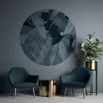 Dekoracje na ścianę w formie okrągłego muralu o średnicy 130 cm. Dekoracje ścienne Dots są wykonane z materiału samoprzylepnego o strukturze płótna ALVAR LINEN.