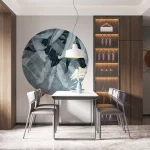 Dekoracje na ścianę w formie okrągłego muralu o średnicy 130 cm. Dekoracje ścienne Dots są wykonane z materiału samoprzylepnego o strukturze płótna ALVAR LINEN.