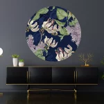 Dekoracje na ścianę w formie okrągłego muralu o średnicy 130 cm. Dekoracje ścienne Dots są wykonane z materiału samoprzylepnego o strukturze płótna ALVAR LINEN.
