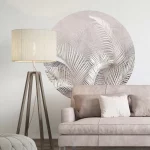 Dekoracje na ścianę w formie okrągłego muralu o średnicy 130 cm. Dekoracje ścienne Dots są wykonane z materiału samoprzylepnego o strukturze płótna ALVAR LINEN.
