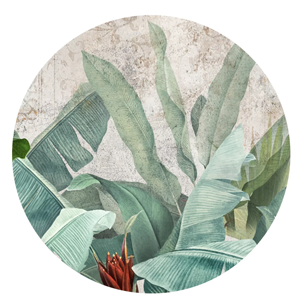 Planujesz odświeżyć wnętrze swojego domu? Doskonałym rozwiązaniem będzie Dots, czyli okrągła, ekskluzywna tapeta ścienna. To wzór w formie okrągłego muralu o średnicy 130 cm. Wzór W tropikach wprowadzi do Twojego domu odrobinę egzotyki. Dzięki niemu będziesz mógł się poczuć niemalże jak na rajskiej wyspie. Taka dekoracja świetnie sprawdzi się w salonie, sypialni, pokoju, przedpokoju a nawet jadalni, kuchni czy łazience. Wzór jest delikatny, ma stonowane barwy i nie zdominuje wnętrza, tylko w ciekawy sposób je podkreśli.