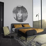 Dekoracje na ścianę w formie okrągłego muralu o średnicy 130 cm. Dekoracje ścienne Dots są wykonane z materiału samoprzylepnego o strukturze płótna ALVAR LINEN.