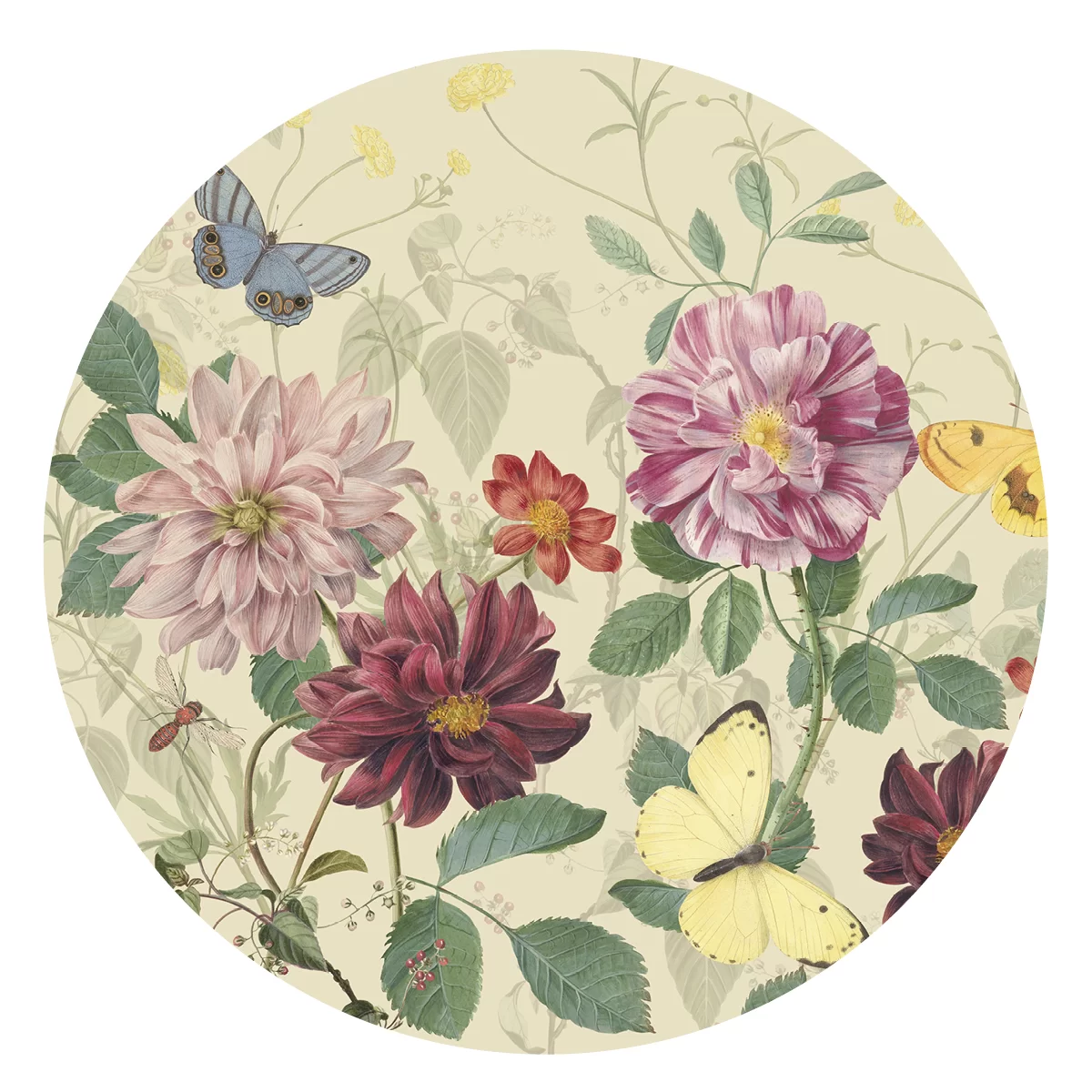 Dekoracje na ścianę w formie okrągłego muralu o średnicy 130 cm. Dekoracje ścienne Dots są wykonane z materiału samoprzylepnego o strukturze płótna ALVAR LINEN.