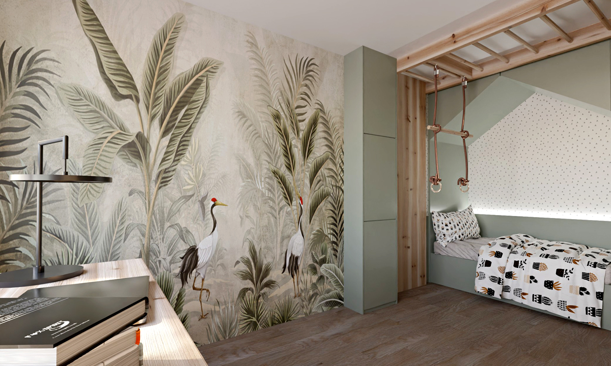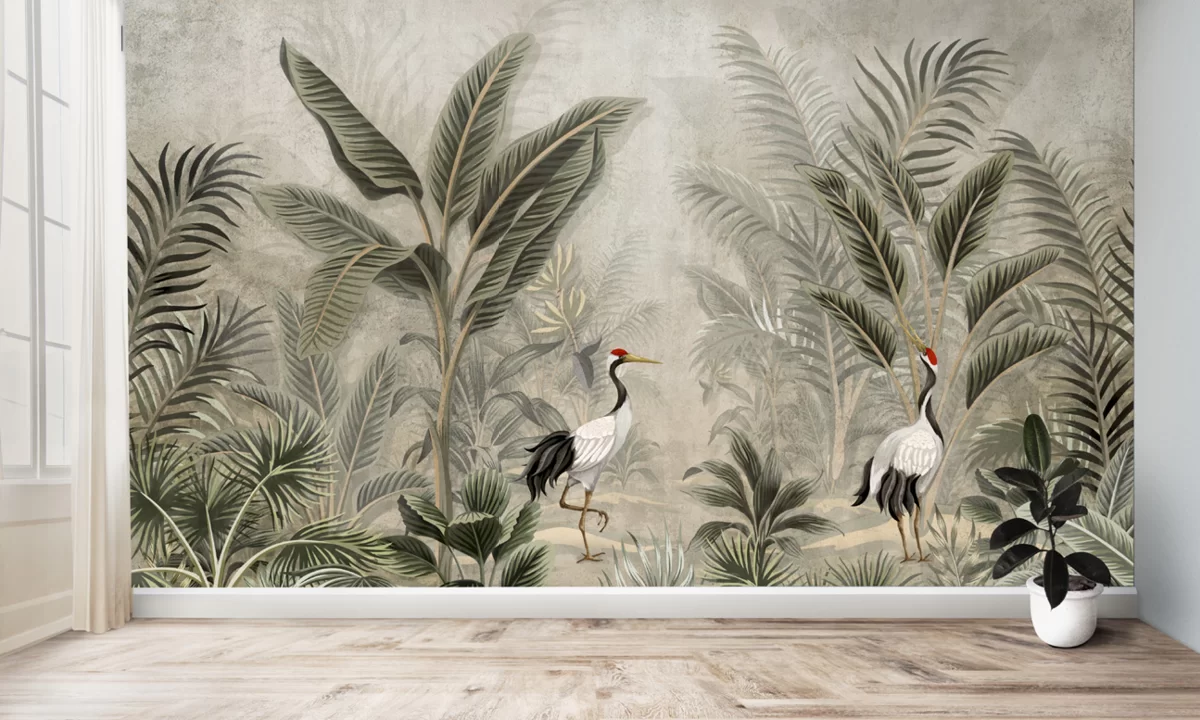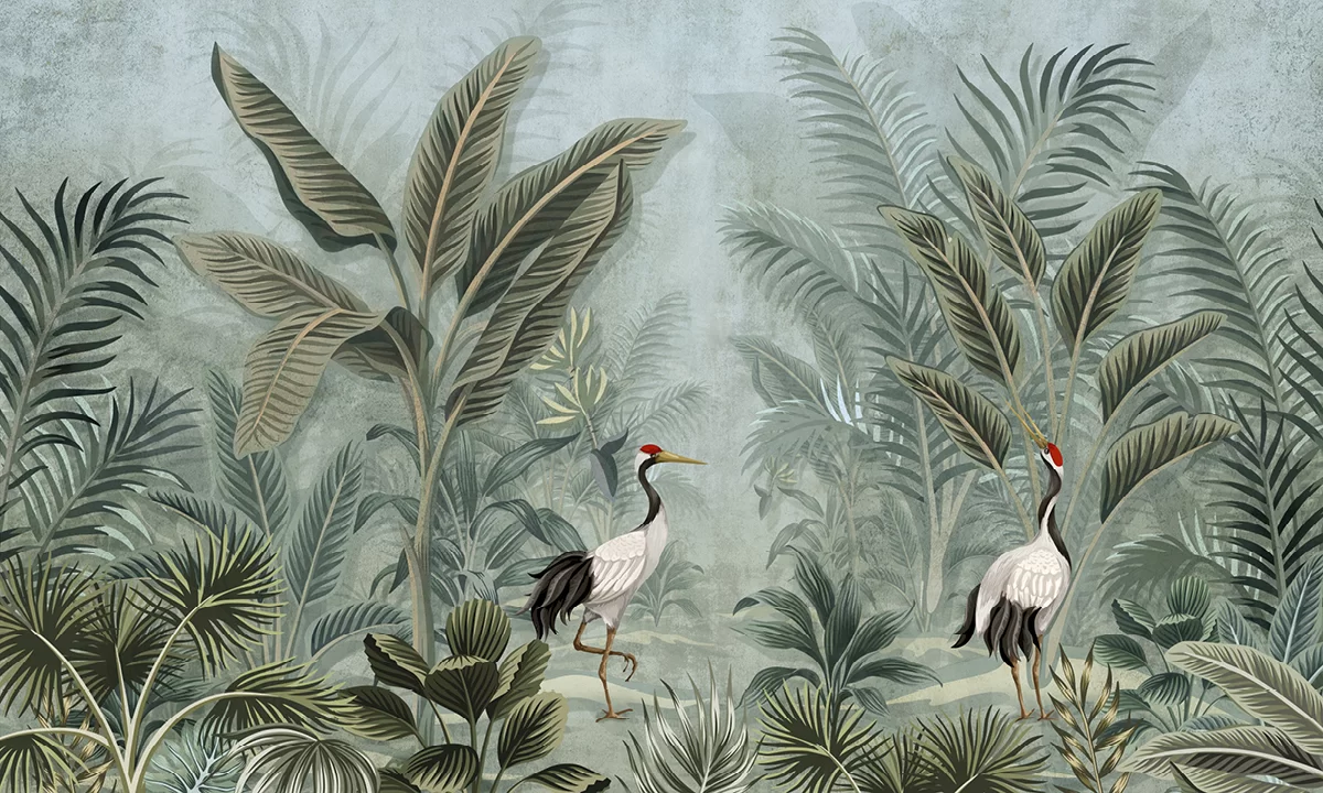 Urocze żurawie na egzotycznym tle to prawdziwie elektryzujący wzór. Dżungla zdecydowanie przyciąga wzrok i robi duże wrażenie. Całość utrzymana jest w odcieniach zielonego z elementami czarnego, białego i czerwieni. Będzie to świetny wzór do większych przestrzeni. Sprawdzi się zarówno w salonie jak i w pokoju. Nasze tapety ścienne wykonane są z najwyższej jakości materiałów oraz z najwyższą starannością, jeżeli chodzi o wzór.