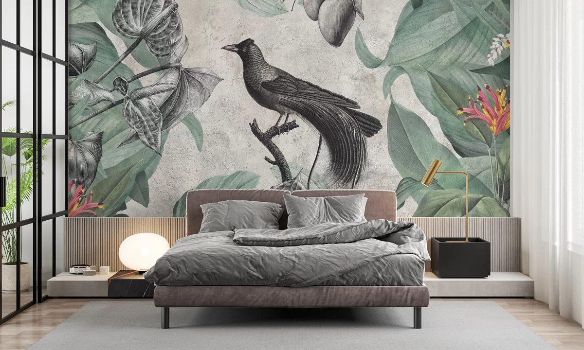 Wprowadź do swojego domu nieco egzotyki. Tapeta Ekscentryk to ciekawy wzór, obok którego nie można przejść obojętnie. Spójrz tylko na te detale wykonania! Główny bohater wzoru dopracowany jest w najmniejszych szczegółach. Duże wrażenie robią również kwiaty i liście, które go otaczają. Modne tapety do domu to ciekawa alternatywa dla tradycyjnego zdobienia ścian.