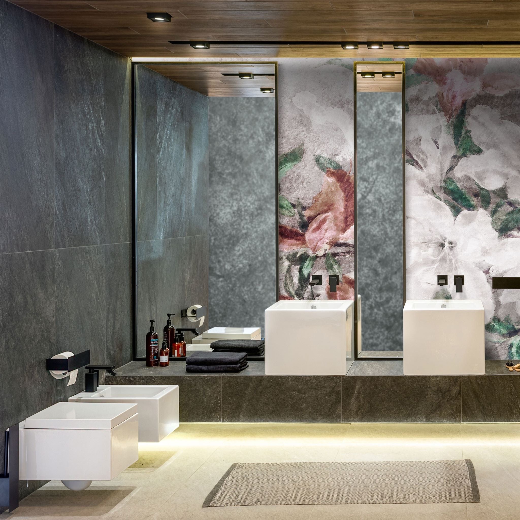 Unikalność projektu polega na jego skali oraz charakterze: zamiast małego, powtarzalnego wzoru, mamy tutaj ciągły obraz z miękko rozmytymi konturami. Inspirowany holenderskimi martwymi naturami, freskami i gobelinami, ten “malarski floralny” wprowadza głębię oraz nostalgiczny klimat do wnętrza. Tworzy też elegancki punkt centralny, który nie przytłacza przestrzeni. Staranny i precyzyjny druk wydobywa niuanse kolorów i faktury, a aksamitnie matowe wykończenie podkreśla elegancję bez odbicia światła.