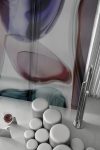 Wzór przypomina żywicę rozlewającą się po powierzchni. Delikatne przejścia kolorów i wrażenie głębi wprowadzają spokój i lekkość. Na przykład beże, szarości i chłodne błękity tworzą stonowaną paletę.