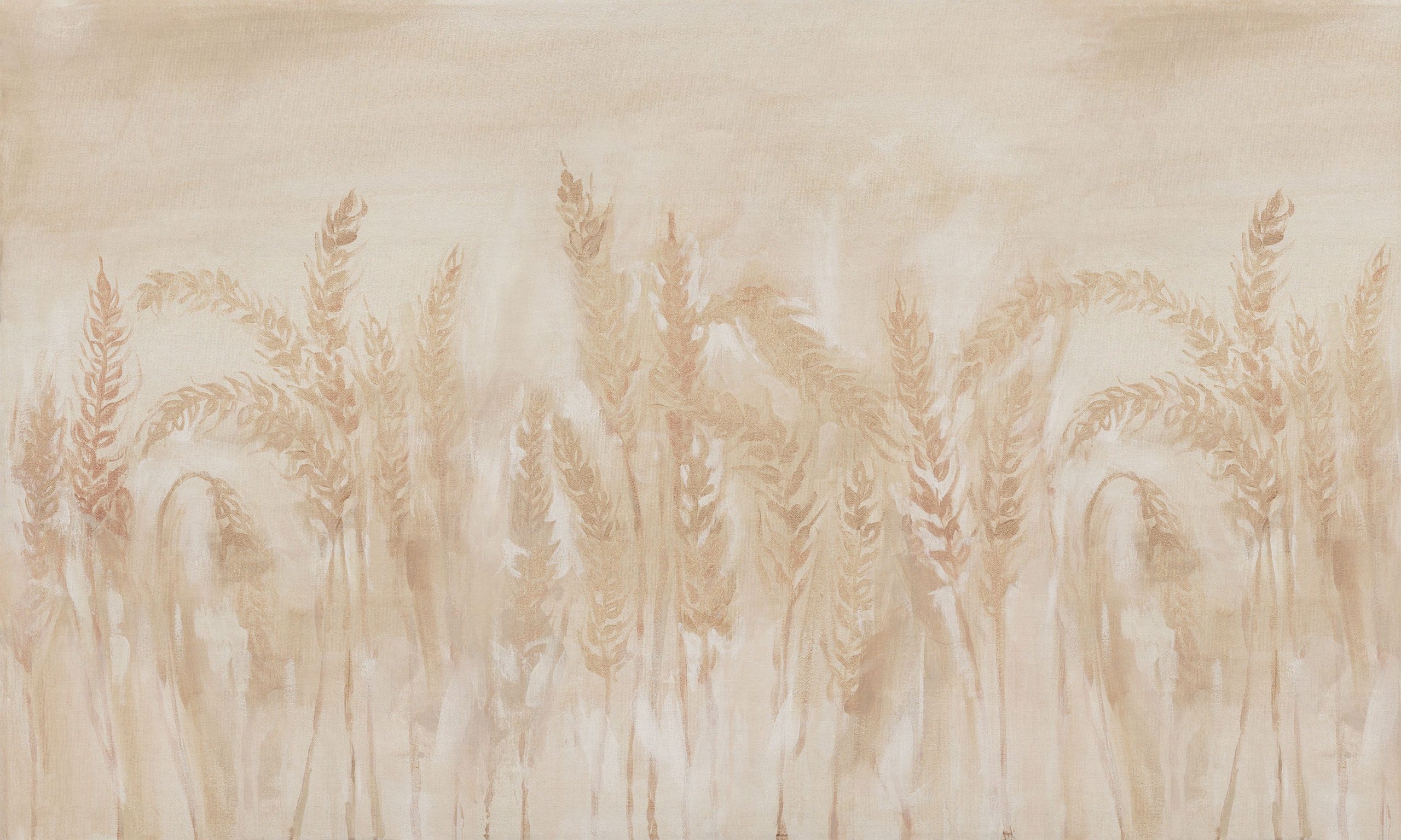 To wyjątkowy wzór: zamiast regularnego motywu otrzymujesz spójny, artystyczny mural. Widać na nim łagodne przejścia tonalne i impresyjne pociągnięcia pędzla. Precyzyjny, ekologiczny druk wysokiej rozdzielczości oddaje fakturę oryginalnego obrazu. Zobaczysz tu zarówno subtelne ziarenka płótna, jak i delikatne kontury źdźbeł. Ta tapeta działa jak duże dzieło sztuki, ale jest łatwa w aranżacji.
