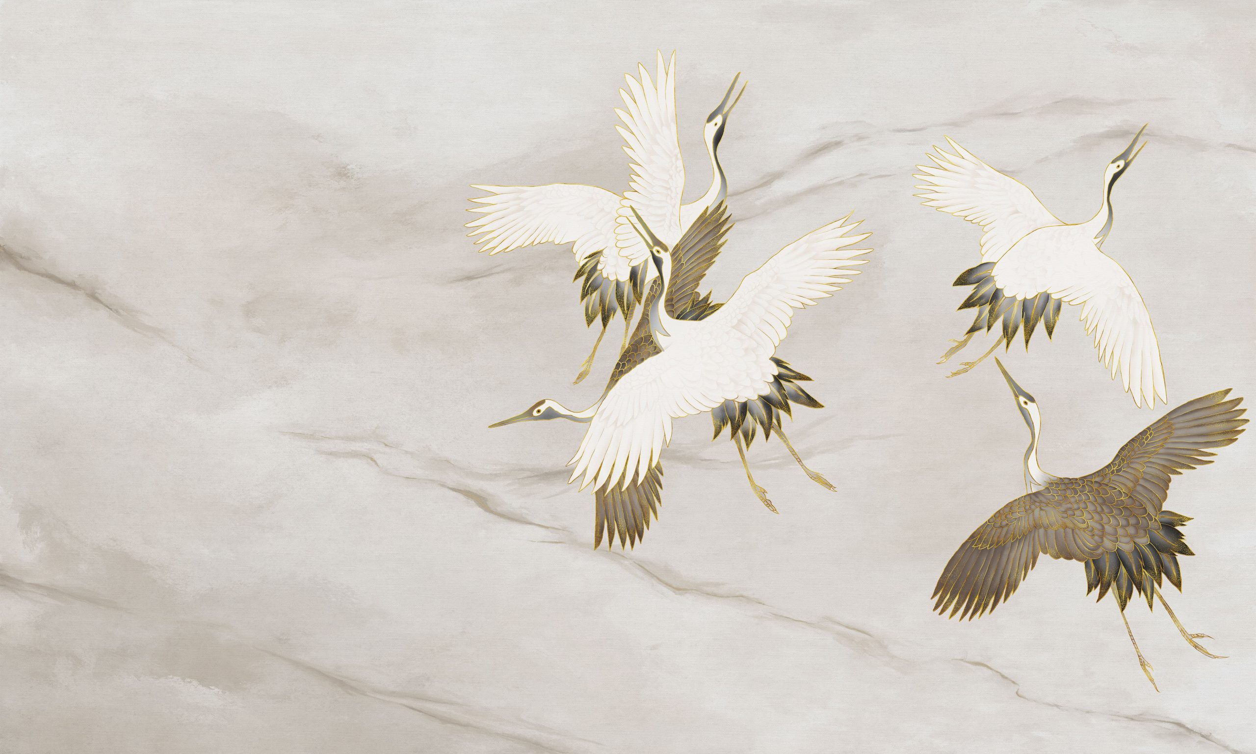 Ten wyjątkowy panel zaprojektowany jest jako jedno duże „płótno”, co oznacza, że wzór nie jest podzielony jak w typowej tapecie. Tworzy spójną, artystyczną kompozycję. Żurawie w locie nadają wnętrzu wrażenie ruchu i lekkości, optycznie otwierając przestrzeń. Precyzyjny, wielotonowy druk wydobywa detale piór oraz subtelne przejścia w tle, dając efekt ręcznie malowanego obrazu.