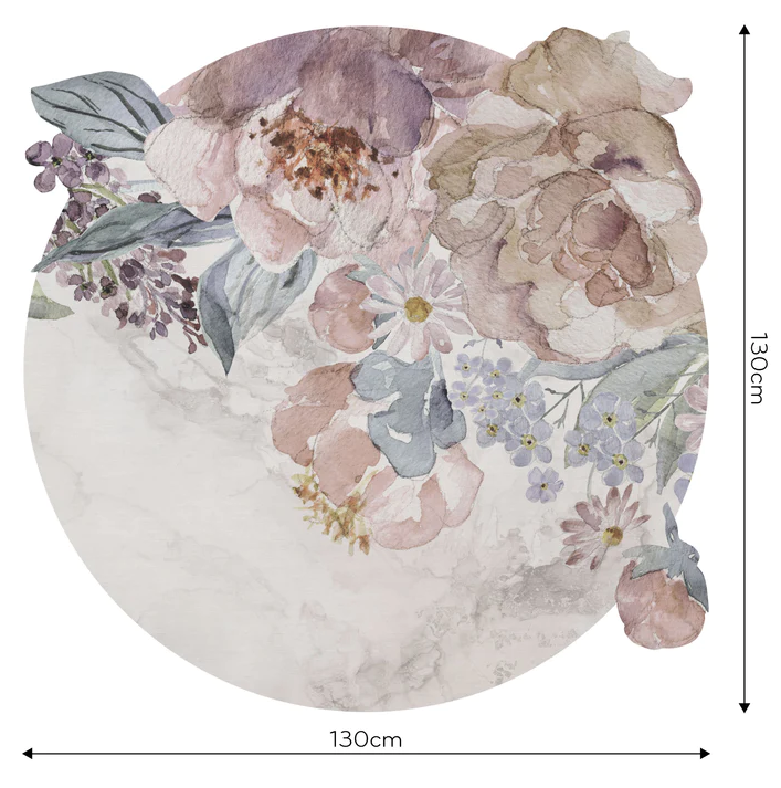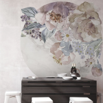 Wyobraź sobie ogród stworzony techniką akwarelową, zamknięty w idealnym kręgu. Tapeta Koło Nettare to dekoracyjny panel, który pełni funkcję obrazu na ścianie. Wprowadza do wnętrza spokój, lekkość i subtelną elegancję. Zgaszone fiolety, lawenda oraz brudny róż przeplatają się z beżami, szarościami, a także przydymioną zielenią i chłodnym błękitem. Ta harmonijna kompozycja, w której znajdują się pełne kwiaty i drobne rośliny, zaprojektowana jest w miękkiej, akwarelowej stylistyce. Co ważne, nie ma tu powtarzalnego wzoru, a rytm i gradacja tonów są starannie wyważone.